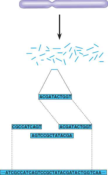 - Cut the DNA from many copies of an entire chromosome into overlapping fragments short enough for sequencing.