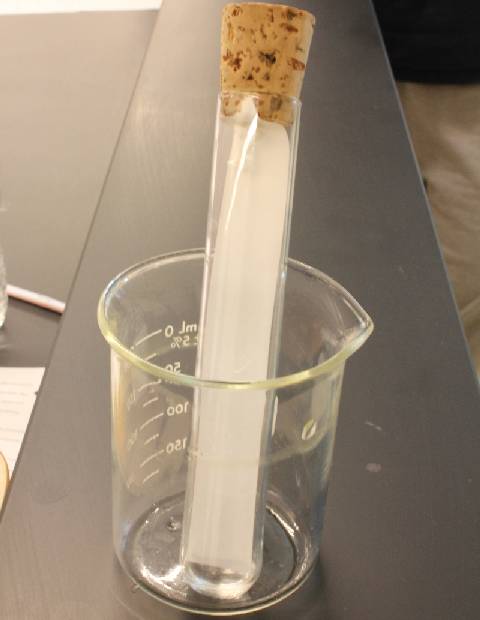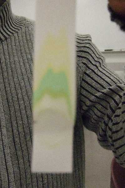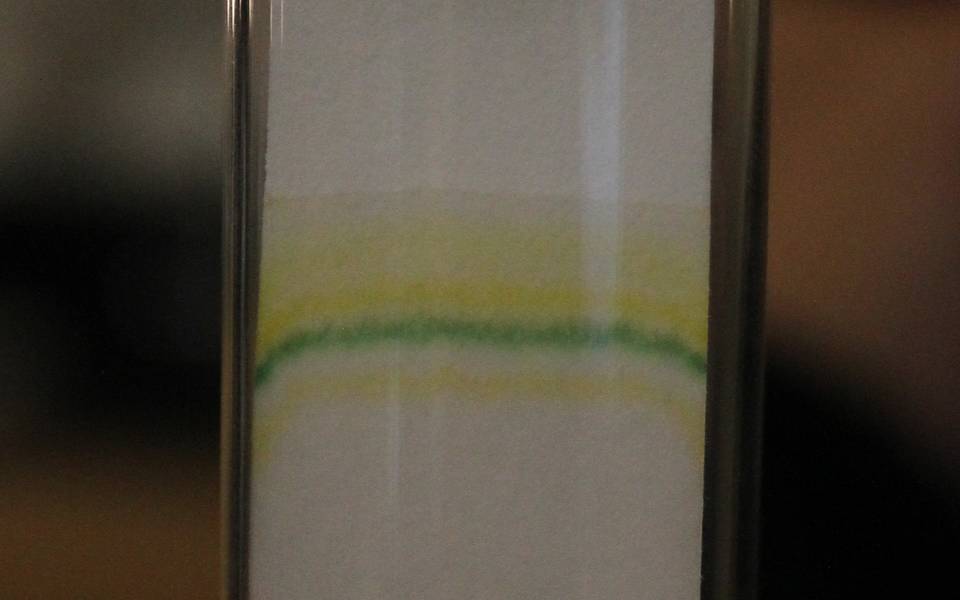 4. Place strip into test tube containing solvent (acetone and toluene). The solution, with the suspended pigments, should move up by capillary action.