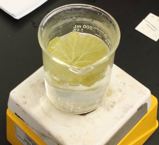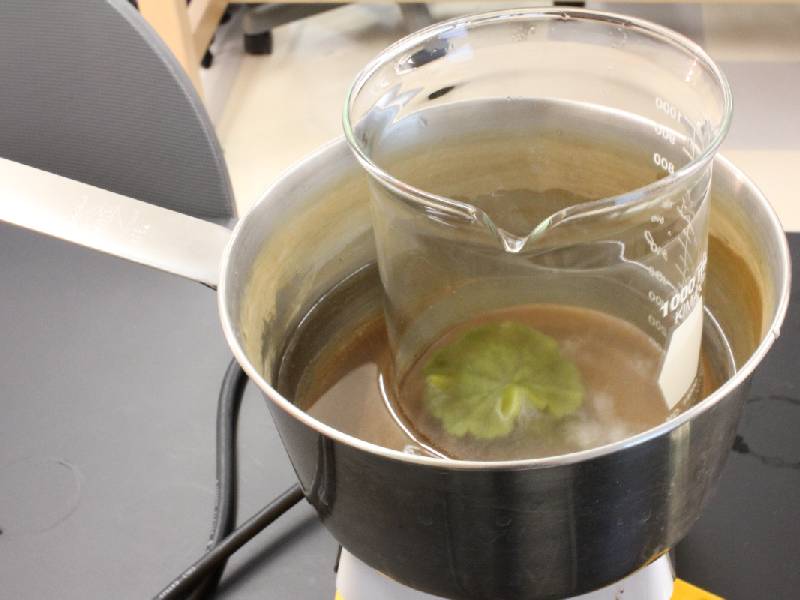 2. Boil the leaf to remove pigments other than chlorophyll.