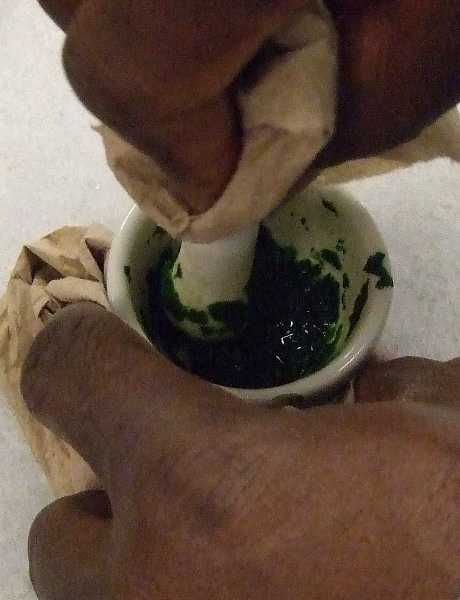 1. Grind spinach in acetone.