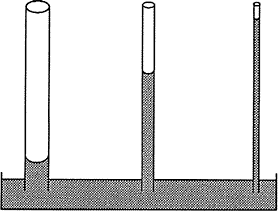 • Van der Waals forces between water and other molecules lead to strong , which can be seen in the meniscus in tubes, and in action in small tubes.